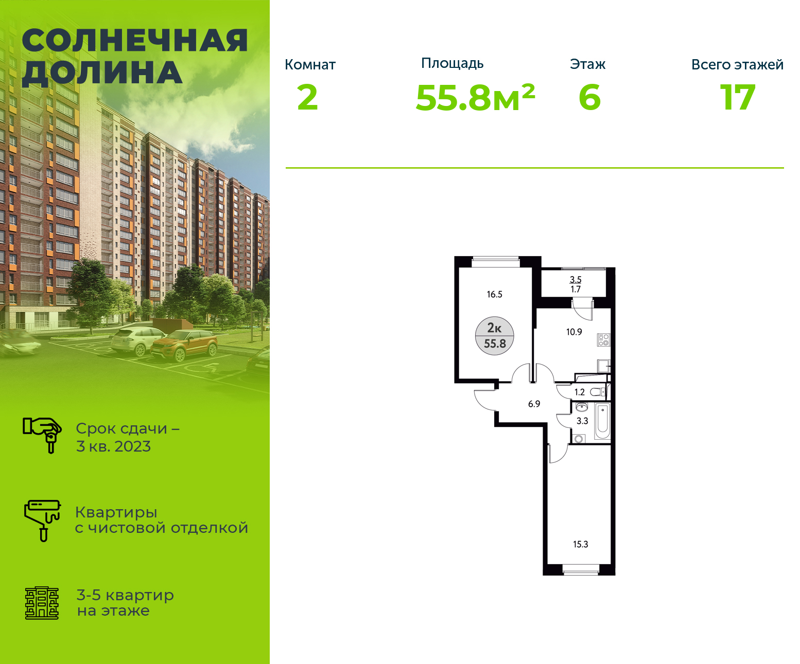 Продается 2х-комнатная квартира 55.8 м², площадь кухни 10.9 м². в ЖК Солнечная долина (г. Щелково) стоимостью 6 054 300 рублей. Квартира находится по адресу Фряновское шоссе, 64к1 недалеко от метро Щёлковская, Первомайская в районе Щелковский. Данная квартира находится на 6 этаже 17 этажного монолитного дома. Из общей 55.8 м², площадь кухни 10.9 м² к жилой относится 31.8м² , в квартире 2 комнаты. В нашем каталоге вы сможете найти и другие 2 комнатные квартиры в ЖК Солнечная долина (г. Щелково) со сроком сдачи III квартал 2023. от 2 900 000 рублей на нашем портале!