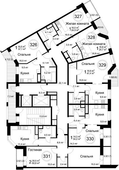 2х-комнатная квартира, 57.6 м2 в ЖК "Лермонтовский"