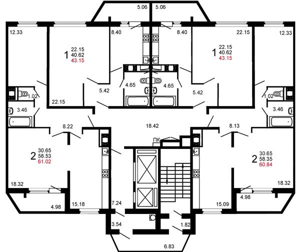 1 комн. квартира 42.9 м2