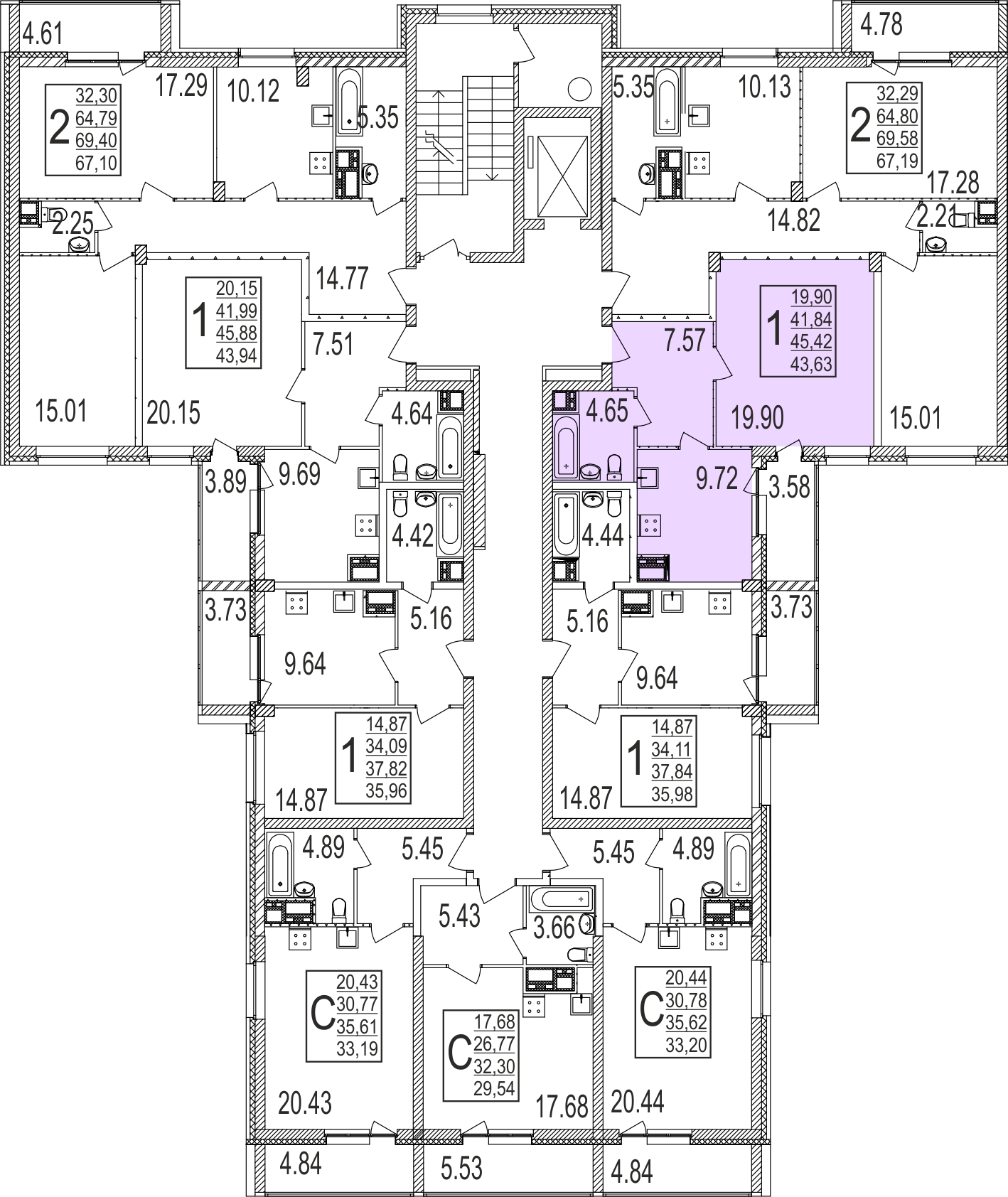 2х-комнатная квартира, 63.96 м2 в ЖК "Новокосино-2"
