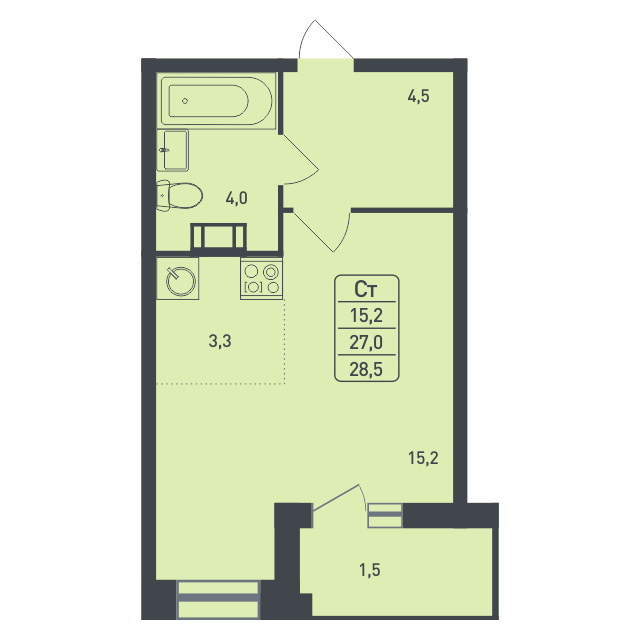 Квартира-студия, 28.5 м2 в ЖК "Новая Щербинка"