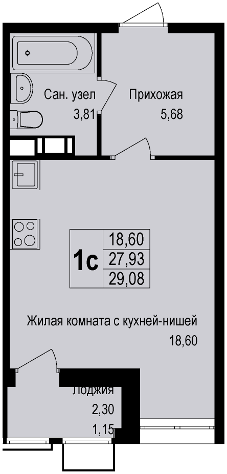 Квартира-студия, 29.12 м2 в ЖК "Новая Щербинка"