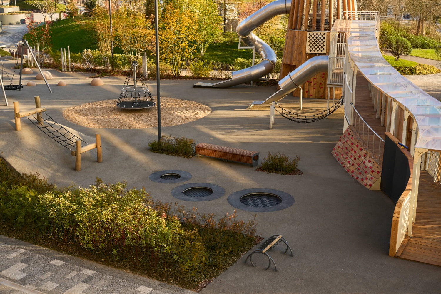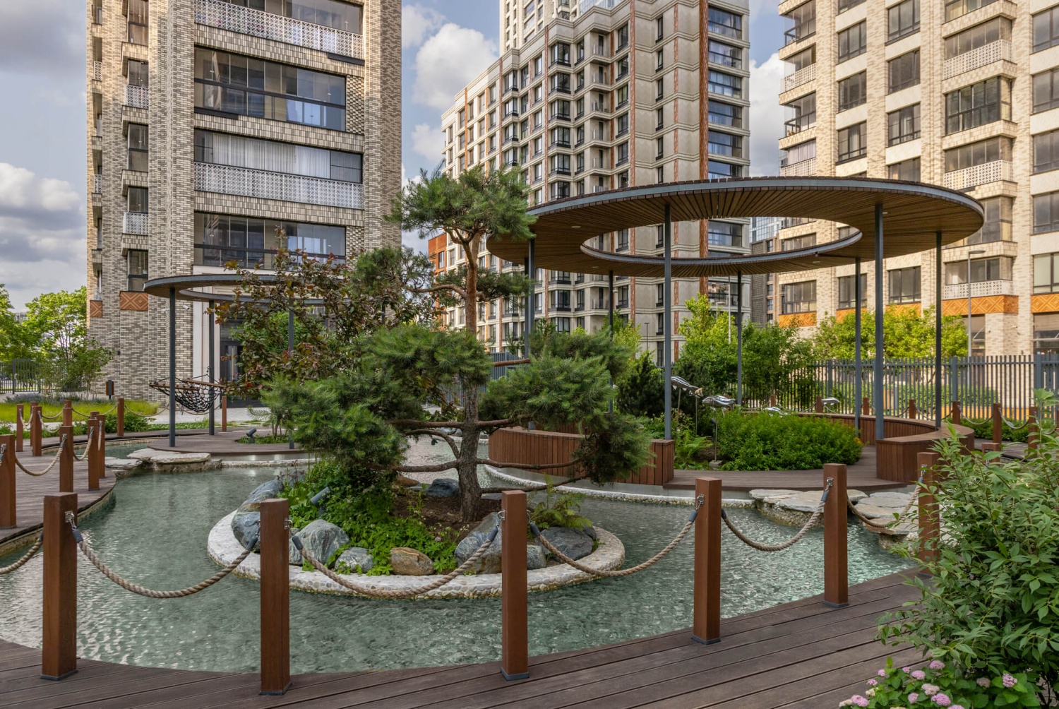 Для отдыха здесь создан уютный двор с дзен-садом, прудом, мостиками и гамаками. Для занятий спортом на свежем воздухе предусмотрены зоны для воркаута и игры в настольный теннис. Оборудованы площадки для детей.