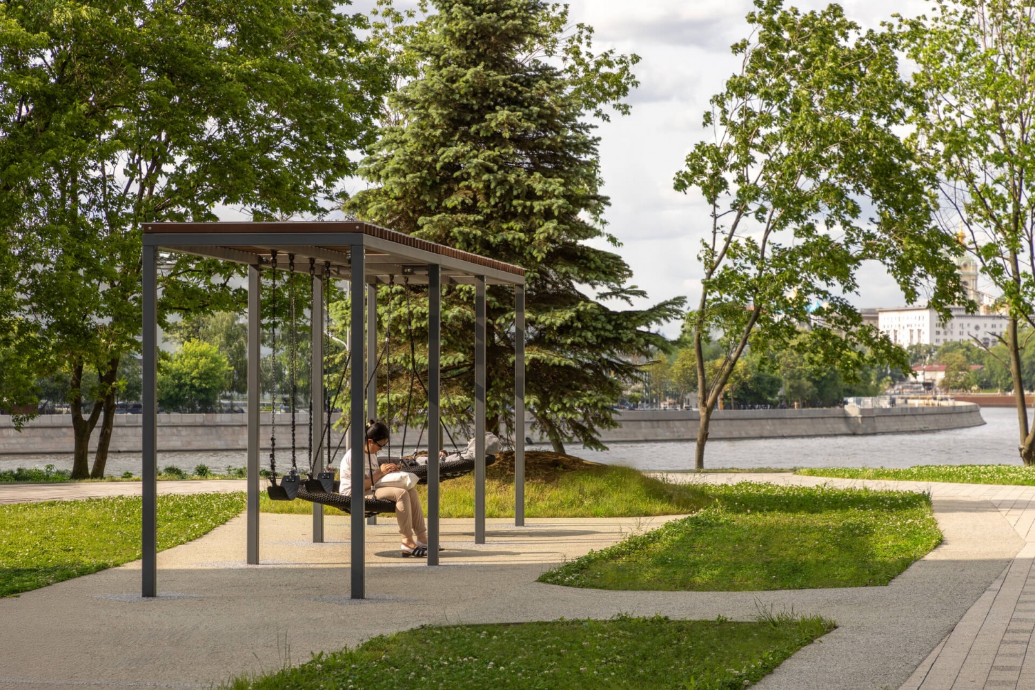 На набережной выполнено качественное благоустройство с центральной площадью, зоной отдыха на ступенчатом террасировании, авторским детским пространством и велосипедной дорожкой. Предусмотрен променад с кафе и ресторанами.
