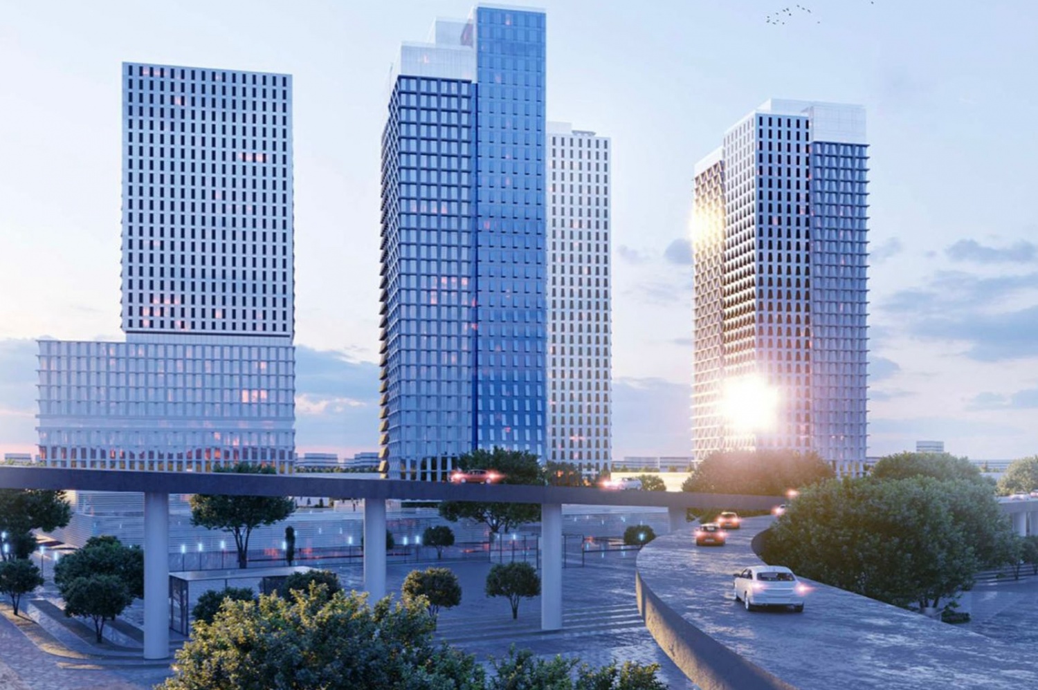ЖК МИРАПОЛИС включает в себя 4 корпуса Монолитный типа высотой в 35 этажей.