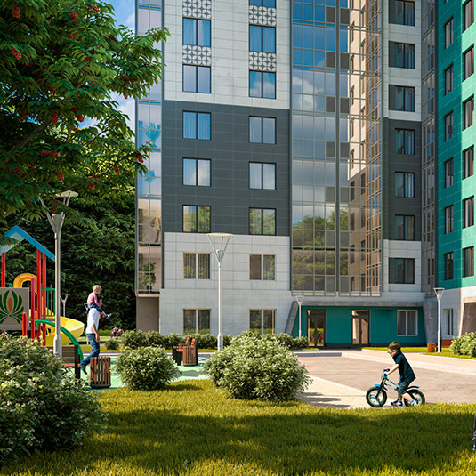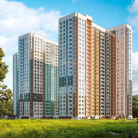 ЖК Новые Изумрудные включает в себя 3 корпуса Кирпично-монолитный типа высотой в 25 этажей.