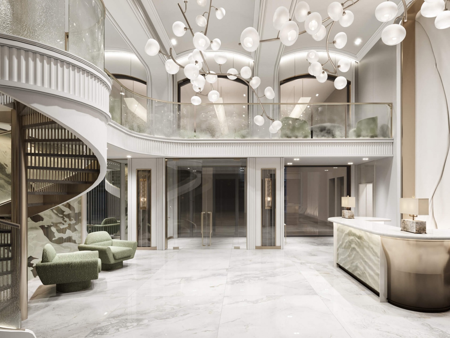 «Обыденский № 1» — красивый, изысканный дом с просторным двухуровневым, светлым, шикарным лобби с потолками 6,5 м и дорогой отделкой.