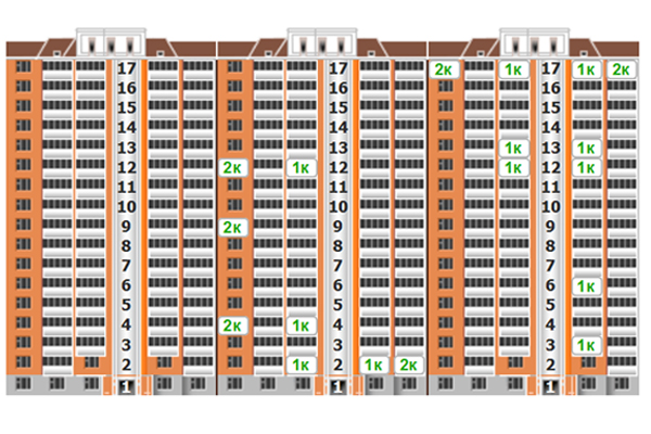 ЖК ул. Зеленая (Балашиха) включает в себя 1 корпус Панельный типа высотой в 17 этажей.