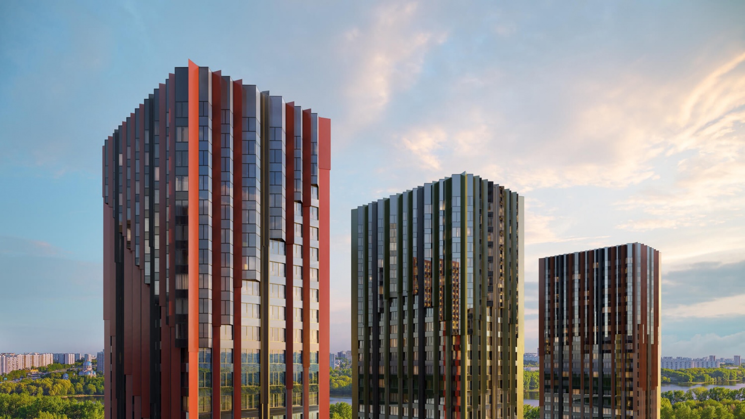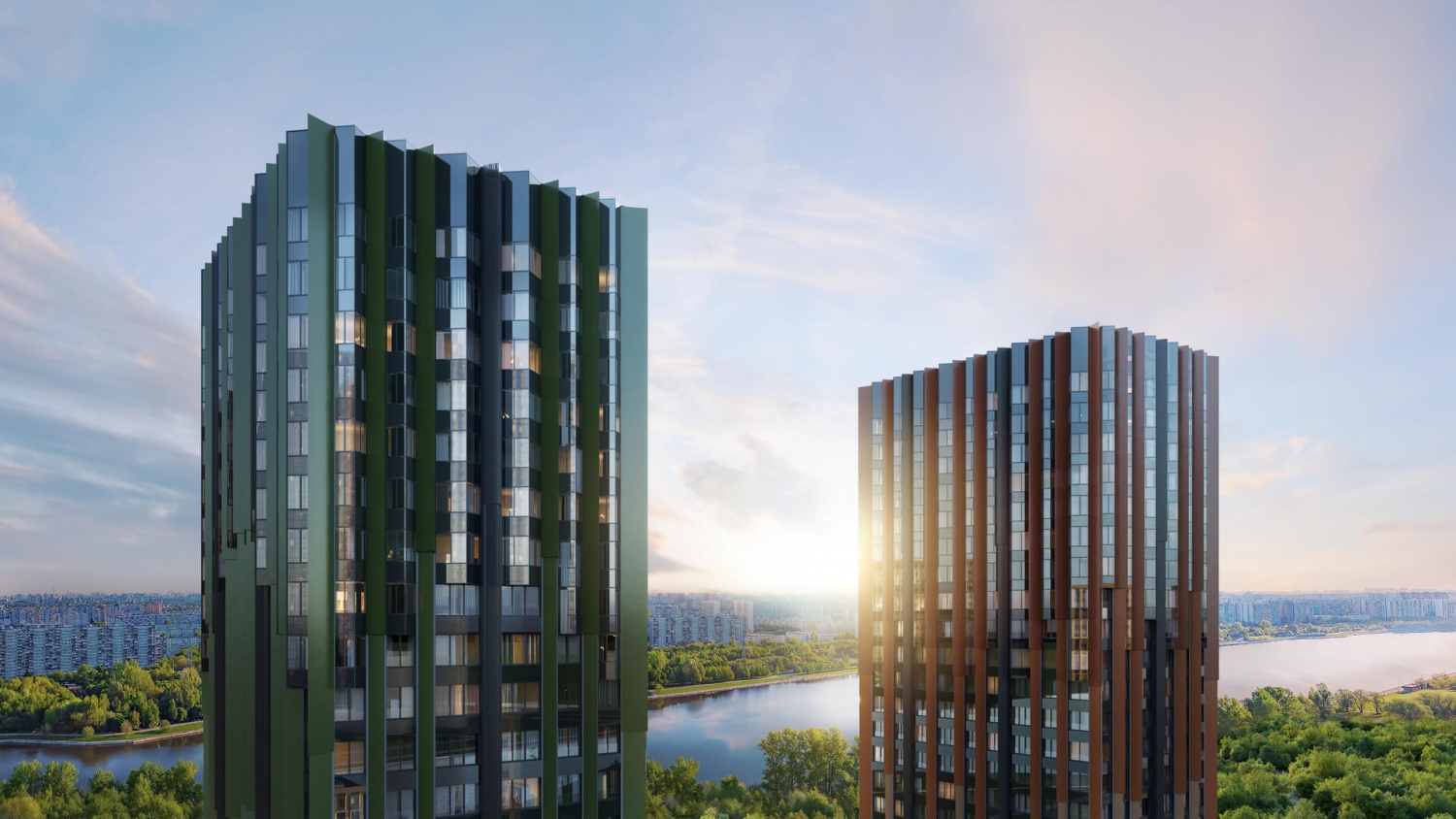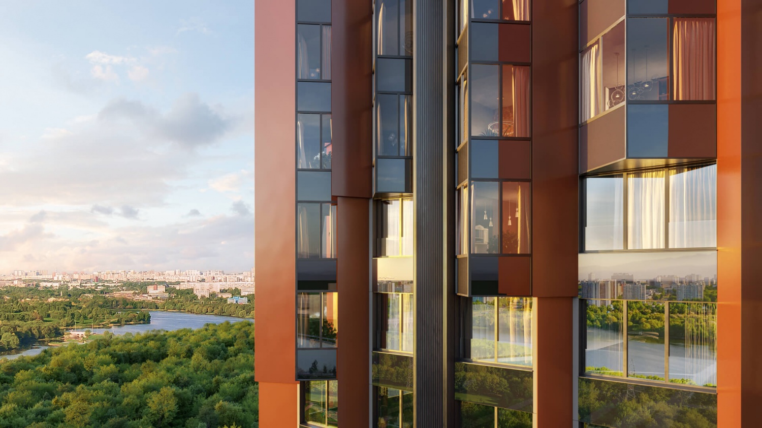 Панорамные виды на парки и водоемы из большинства квартир